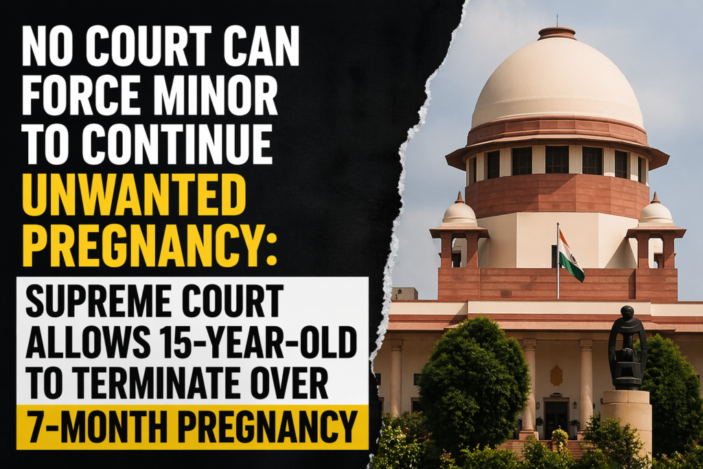 The order was passed by a Bench comprising Justice B. V. Nagarathna and Justice Ujjal Bhuyan, which observed that forcing continuation of pregnancy in such circumstances would have serious consequences on the minor’s mental health, education, social standing, and overall development.